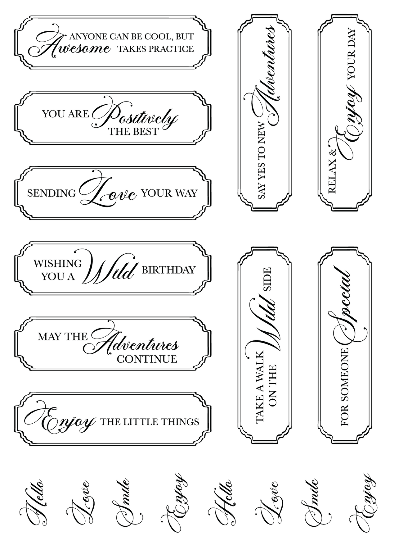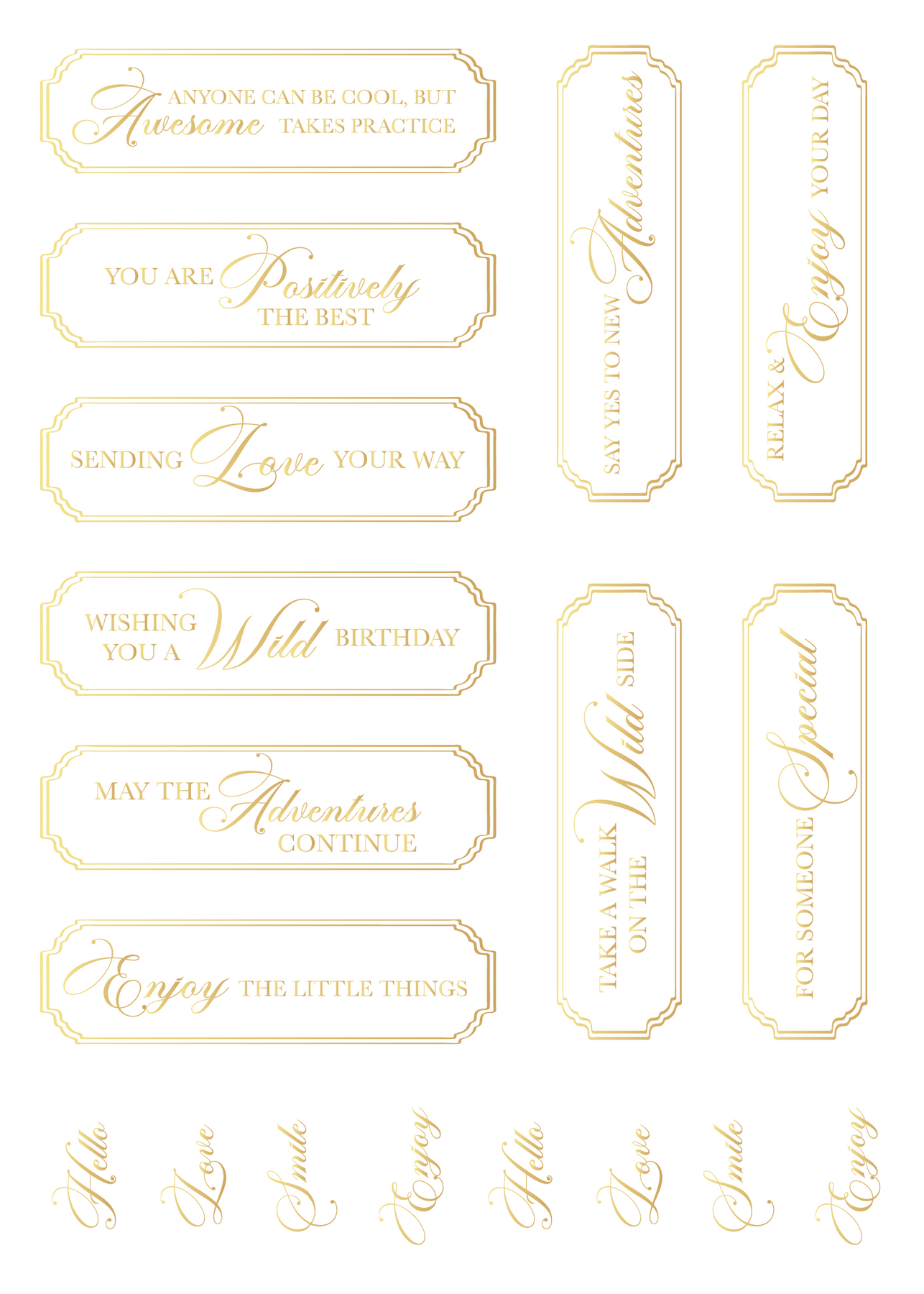 9042 Wildwood Sentiments 5x7 Rub-On Transfers in black and gold foil