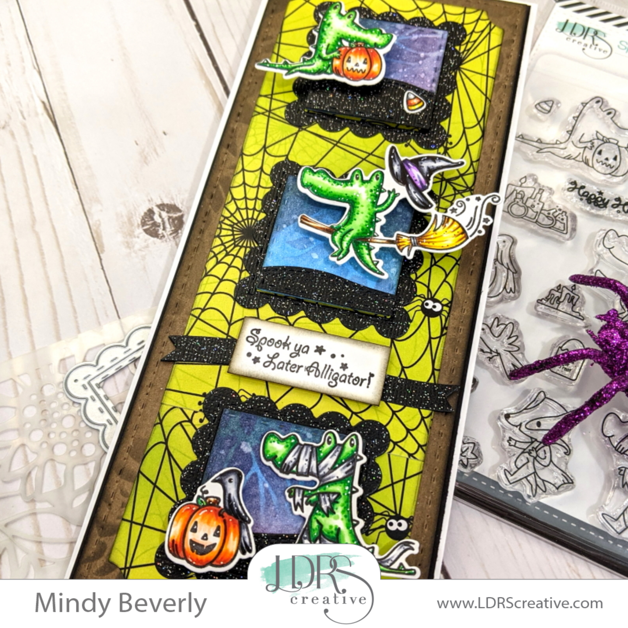 For my card I am showcasing the Absolutely Adorable New Spook Ya Later Alligator Clear Stamp Set, Coordinating Dies, and Stencil. I just Love how versatile the stamps, dies, stencils, and inks are from LDRS Creative, and how they can be used for so many different occasions and projects. Now here is what I created: