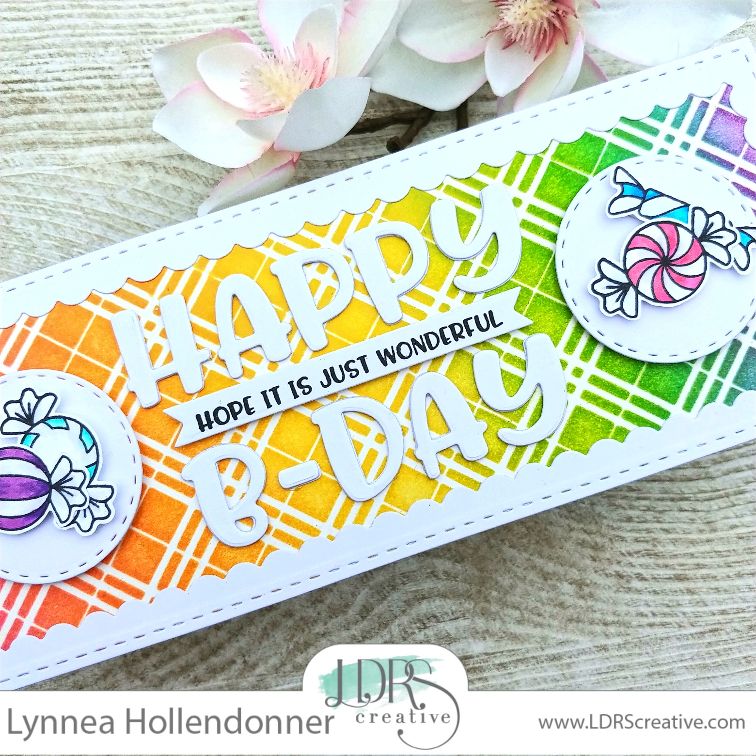 Everyone wants to have a delightfully sweet birthday, right? Today I'll be using LDRS Creative goodies and I'm going to show you how I stretched a stencil to make it cover a slimline card to make a rainbow birthday card!